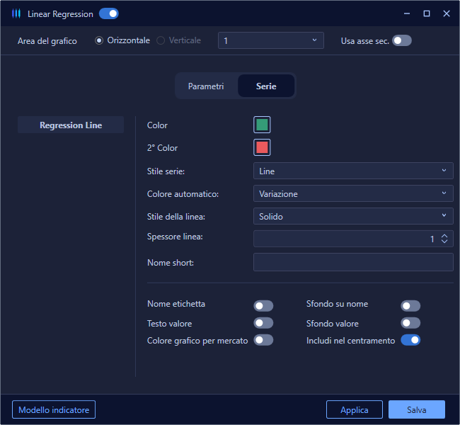 Im Abschnitt Parameter können Sie die Datenbasis und die Zeiträume der linearen Regression auswählen.Serien