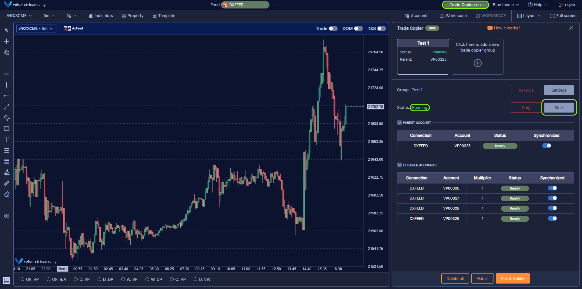 Once we have saved the copier settings, we just need to click on Start and it will be active.